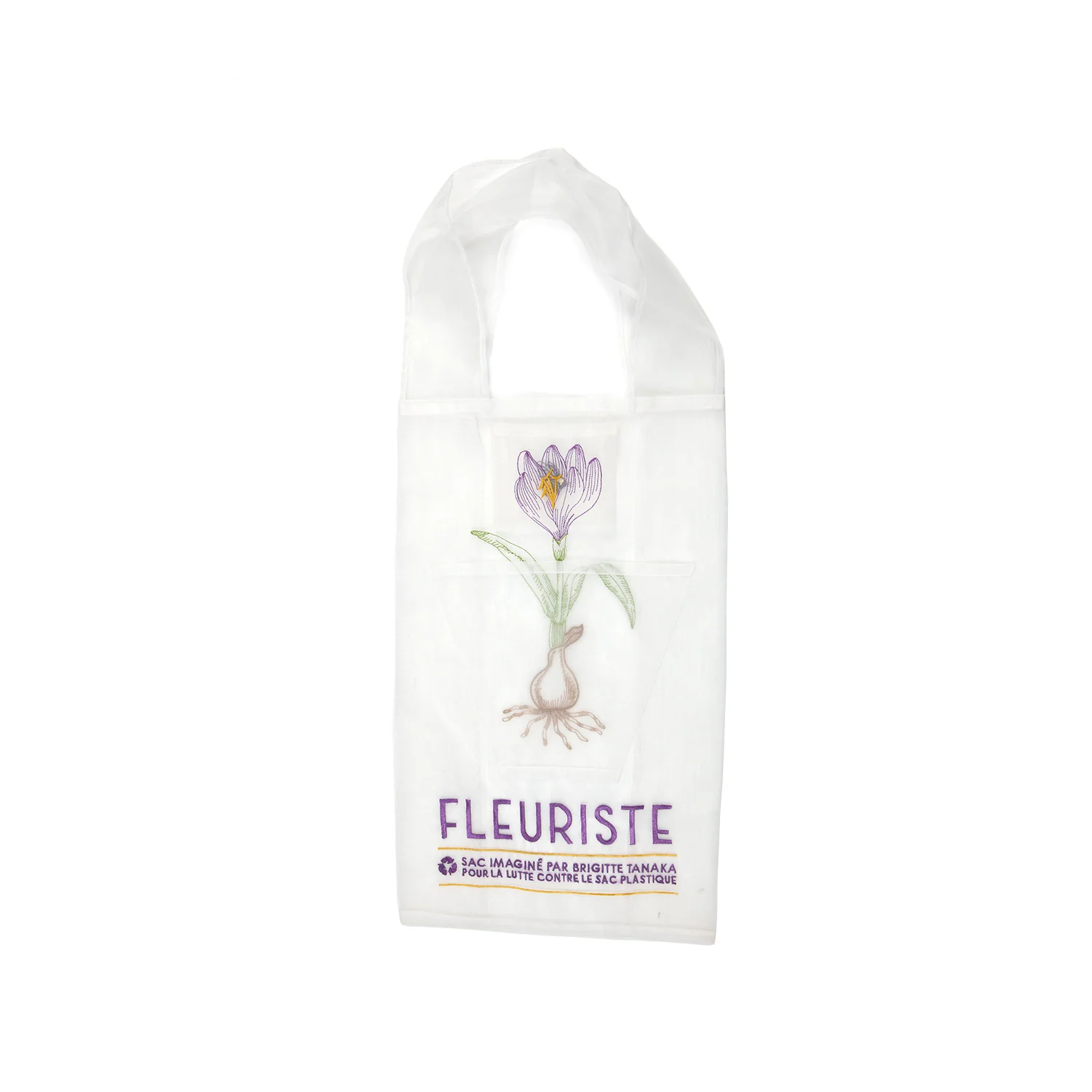 Brodé très délicatement avec un crocus et son bulbe, ce sac est très original de par sa pochette à l'avant vous permettant de mettre vos bouquets de fleurs facilement sans les abîmer. Vous pouvez ranger vos courses et affaires à l'intérieur du sac et ranger votre bouquet dans la pochette à l'avant du sac de façon à avoir les deux mains libres. Il y a également une petite pochette intérieure vous permettant de ranger facilement vos petits objets (cartes bancaires, clés, monnaies...).